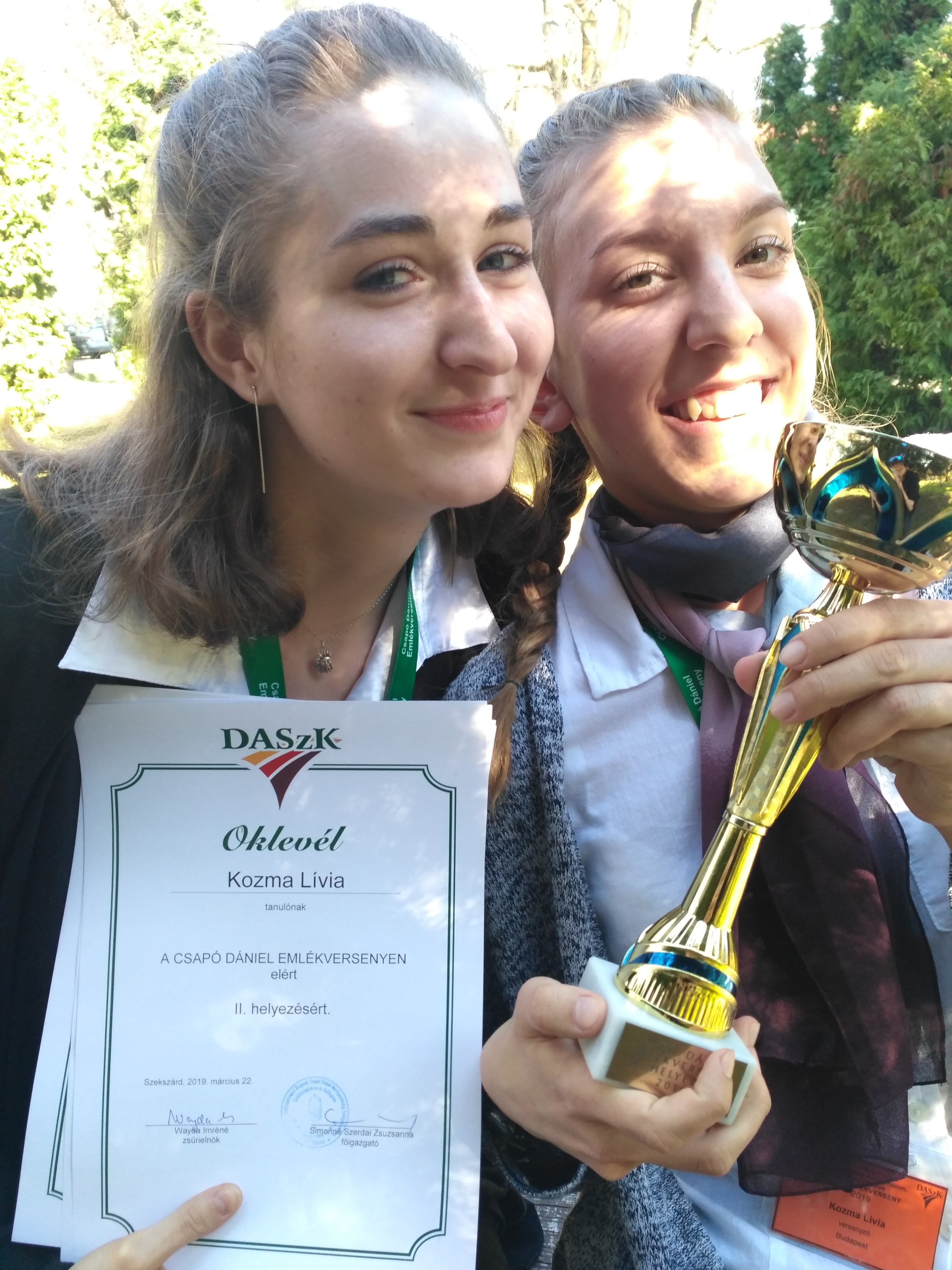 Munkájukat a szekszárdi Csapó Dániel Emlékversenyen ismertették a zsűrivel, valamint diáktársaikkal. Az eredmény az előkelő második helyezés lett. Gratulálunk!