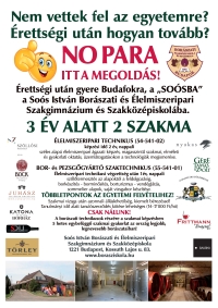 Érettségi után gyere Budafokra, a „Soósba", a Soós István Borászati és Élelmiszeripari Szakgimnázium és Szakközépiskolába!